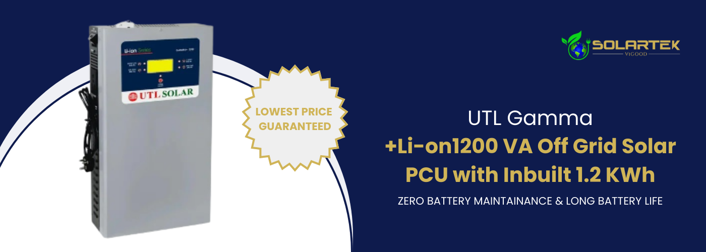 UTL Gamma +Li-on1200 VA Off Grid Solar PCU with Inbuilt 1.2 KWh Lithium Phosphate Battery