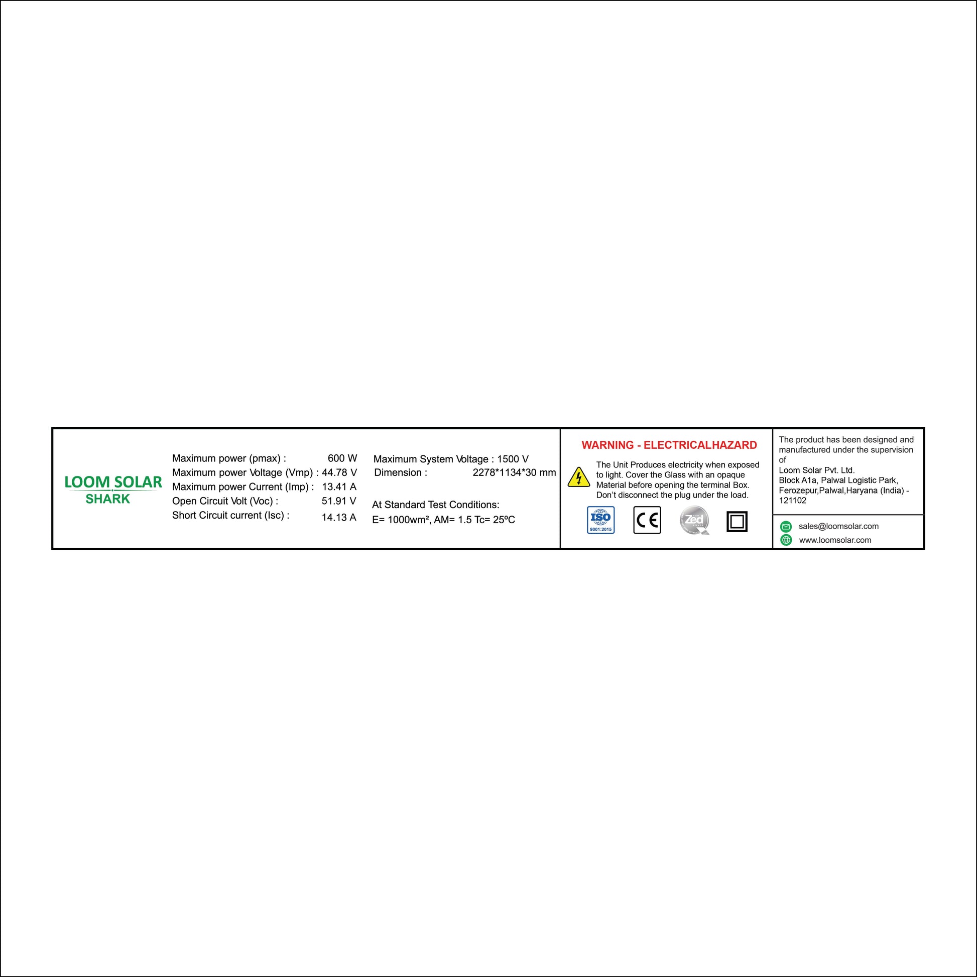 Loom Solar Panel - SHARK 600 Wp | N-Type TOPCon Bifacial 16BB (Pack of 2)