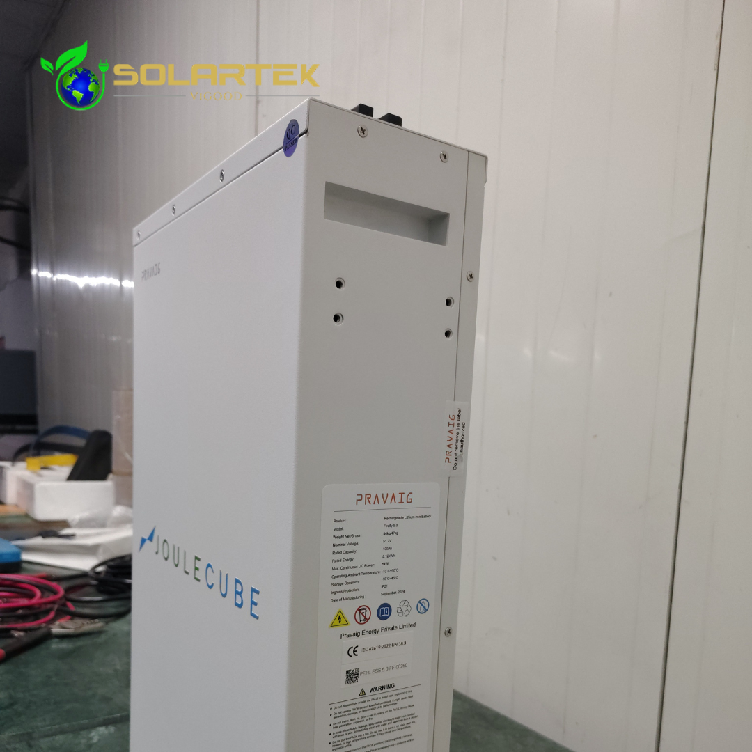 The Pravig JouleCube Firefly 5.0 is a high-performance 5.12 kWh lithium iron phosphate (LiFePO₄) energy storage system, designed for reliable solar and backup power applications. Built for homes and small commercial setups, Firefly 5.0 delivers stable power, long cycle life, and seamless inverter compatibility.
